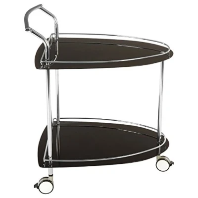 Modern Design, Display and serve your drinks with this Elegant serving trolley to give a vintage effect Features, The storage trolley on wheels has a chrome handle and wheels that can be locked Stability, The curved glass of the drinks trolley provides a sturdy and smooth surface for you to place your glasses on Cleaning, Wipe these serving trolleys clean with a soft cloth. Do not use abrasive cleaners Dimensions, The size of this drinks cart is Height 84 cm x width 82 cm x depth 52 cm