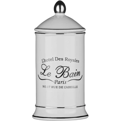 ManoManoGeneral description The Premier Housewares Le Bain Cotton Bud Jar is a stylish holder crafted from durable white stoneware. Its elegant black French wording adds a sophisticated touch, making it a perfect accent piece for your bathroom decor. Technical specifications Material: White stoneware Color: White with black detailing