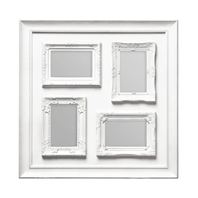 Amazon MarketplaceMade using durable and lightweight plastic, each frame features elegant embossed detail enhancing its eloquent style Two landscape and two portraits frames allow you to choose the way to display pictures Hooks at the back will allow you to place it landscape or portrait Care instructions: Wipe clean with a soft cloth Dimensions (H x W x D): 53 x 53 x 3 cm