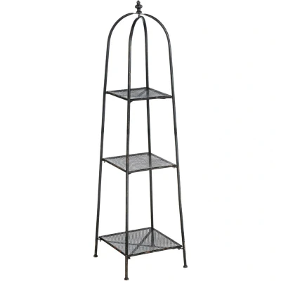 General description An eclectic look from yesteryear, the three-tier New York Loft shelf unit allows you to store and display your favorite household items. Made from robust black metal with a distressed finish, this antiquated shelf unit features three tiers, each with a mesh surface for an industrial feel. Perfect for keeping your home organized and tidy, you can add a personal touch by displaying photos, plants, flowers, and decorative items. Creating a bold statement, the shelf unit is ideal for use in your living area, complementing an eclectic decor.