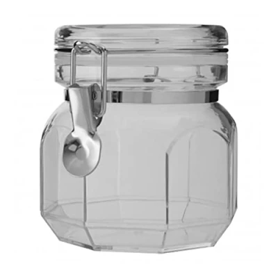 AmazonMultipurpose, great for storing up your tea bags, ground coffee, spices, biscuits, grains, and cat or dog treats Transparent body, this tea/coffee canister features a transparent body so you can easily see what's inside of it Clip open lid, this cookie jar has a clip open lid for your ease, the lid helps keep the jar airtight Minimal and warm metallic accents, this storage jar will make the perfect addition to your contemporary and classic kitchen Size and dimensions, this tea canister comes in an optimal size with the following dimensions 13x12x12