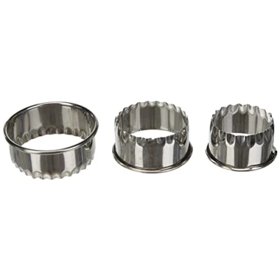 Premier Housewares set of three pastry cutters are the ideal tools will give your treat the professional look Each cutter is made from durable stainless steel and feature a fluted design The three sizes, Ø6 cm, Ø7 cm, Ø8 cm, ensure you can bake delicious treats of all your family and friends Dishwasher safe