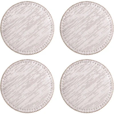 JoybuyThe Knightsbridge Set of 4 Round Coasters features a faux leather finish, textured surface, and silver stainless steel pearl fringe for a modern, elegant look. Perfect for protecting tables while enhancing any dining or living space.