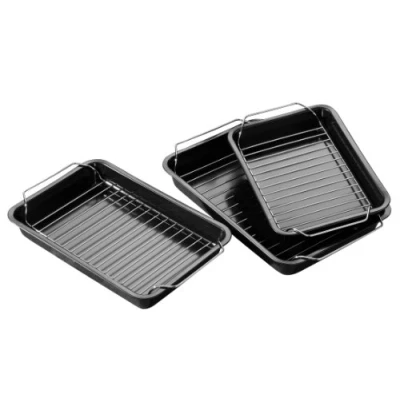 JoybuyThis set includes three non-stick roasting trays with wire racks, offering durable, stylish design for healthier cooking. The trays reduce fat and oil use, are easy to clean, and come in three sizes for versatile meal preparation.