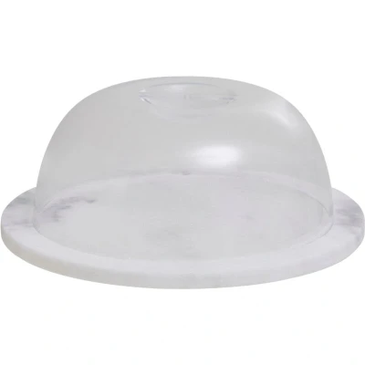 Premier Housewares Round White Marble Cheese Board With Clear Plastic Dome Polished Finish Sturdy and Versatile w20 x d20 h8cm