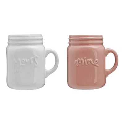 Yours and Mine embossed mugs made from smooth porcelain Generous capacity of 360 ml Shaped like mason jars, these giftable mugs are a contemporary take on the rustic kitchen look Care instructions: Wash in warm soapy water, rinse and towel dry Dimensions (H x W x D): 12 x 11 x 9 cm