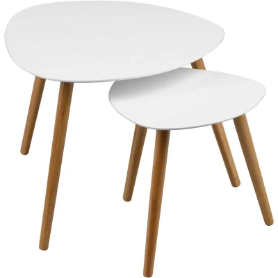 Premier Housewares Set of 2 Nest Tables White Top Coffee for Living Room Nesting with 3 Wood Legs Side Scandinavian End