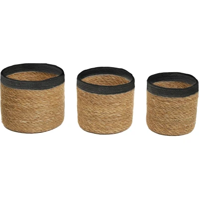 JoybuyThis set of three handwoven seagrass baskets offers rustic charm and coastal style, with a nesting design for space-saving storage. Perfect for organizing laundry or household items, each basket features a black accent for a modern touch.