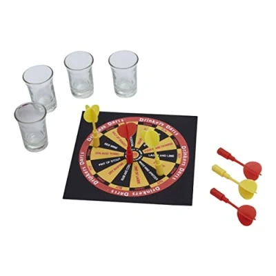 Fun, this set will result in a fun game for 2-4 players with a simple to follow instructions Set, this drinking game includes one dart board, 4 shot glasses, and darts Versatile, you can use alcohol, different juices, and fizzy drinks in order to play the game Care instructions, simply wash glasses with warm soapy water, do not use abrasive cleaners Dimensions, the dimensions of the set are width x depth x height 15 cm x 3 cm x 15 cm
