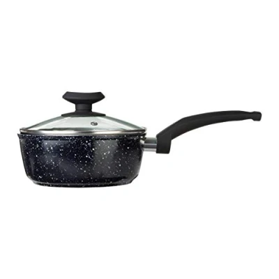 Made out of forged aluminum, the saucepan promotes strength and high kitchen performance Marble coating ensures fast and even heating, while the non-stick properties allow you to use less oil for healthier meals Glass lid features a vent to allow excess steam to escape, while the handle is designed for easy lifting Care instructions: Wash in warm soapy water, rinse and towel dry Dimensions (H x W x D): 13 x 34 x 17 cm