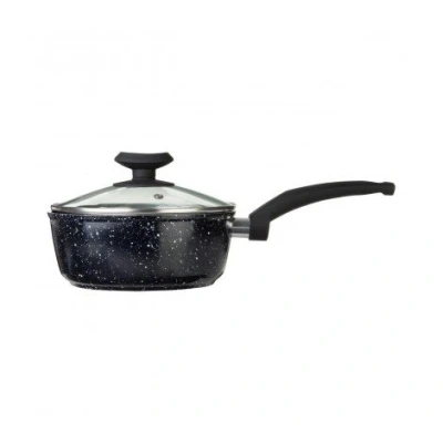 Made out of forged aluminum, the saucepan promotes strength and high kitchen performance Marble coating ensures fast and even heating, while the non-stick properties allow you to use less oil for healthier meals Glass lid features a vent to allow excess steam to escape, while the handle is designed for easy lifting Care instructions: Wash in warm soapy water, rinse and towel dry Dimensions (H x W x D): 14 x 35 x 19 cm