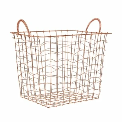 Stylish and Functional Storage Solution: This copper plated basket is perfect for keeping your home organized. Whether you need to store books, magazines, or toys, its sleek and tapered design complements modern decor. High-Quality Iron Construction: Crafted from durable iron, this iron wire basket is built to last. The strong material ensures long-term use, and the copper finish not only adds a contemporary touch but also protect the basket from wear and tear. Minimalist Design with Spiral Details: The sleek, wire frame basket features vertical and wavy lines, creating a visually appealing minimalist look. Its spiral detail basket adds a subtle decorative touch, making it as stylish as it is functional. Dual Handles for Easy Portability: Designed with dual side handles, this rectangular iron basket is easy to carry from room to room. Its lightweight design, at just 0.88kg, means you can easily move it around your home without hassle. Easy to Care for and Maintain: This iron basket is easy to clean and maintain. Simply wash in warm, soapy water to keep it looking its best. The copper finish adds to its durability, ensuring it remains a stylish part of your home for years to come.