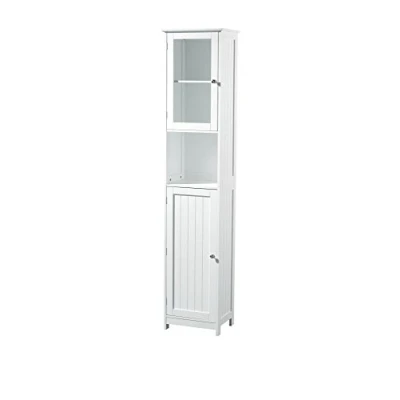 Storage, The white cabinet is a space saving storage solution that will help keep your bathroom organised Features, two single doors with inner shelves and central space for storing your bathroom essentials Materials, The tall bathroom cabinet has been made from reliable MDF with chrome handles and panel details Care Instructions, The kitchen cabinet can be cleaned with a soft damp cloth The size of the tall bathroom and kitchen cabinet is: Height 189 cm x Width 40 cm x Depth 30 cm