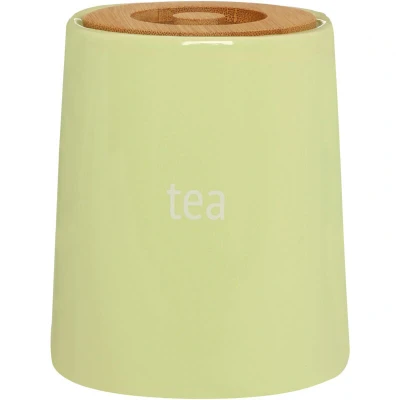 General description This Green Ceramic Tea Canister from Interiors By Premier elevates your kitchen organization with its charming blend of functionality and style, making it a must-have for any tea lover. Crafted from durable dolomite, this canister is designed to last, ensuring your tea remains fresh and flavorful. Its tapered design adds a modern touch to your kitchen decor, while the white "Tea" text clearly indicates its contents. Technical specifications Dimensions: H14 x D12 x W12 cm Weight: 0.48 kg Other information Bamboo lid with integrated handle for secure fit Versatile use for loose leaf tea or as a decorative piece