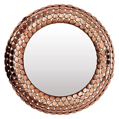 A wonderful feature in your home, the striking design of our Templar mirror is accentuated by its pebble effect frame, that will reflect style and light into your room Made from robust iron and given a copper finish, the round frame features hundreds of individual pebble that are welded together, bringing focus to the mirror The chic Templar mirror will provide your home with a functional and fashionable accessory Care instructions: Wipe clean with a soft cloth. Do not use abrasive cleaners Height 63 x Width 63 x Depth 3 cm