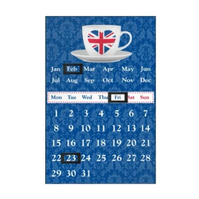 General description The Premier Housewares Union Jack Magnetic Calendar is a unique and eco-friendly calendar that eliminates the need for page changes. Simply move the magnetic markers to indicate the current date, making it easy to keep track of time without waste. Usage To use the calendar, simply adjust the magnetic markers to the current date. This straightforward method allows for easy date tracking throughout the year.