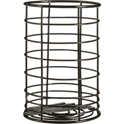 General description The Vertex utensil holder is crafted from tough iron with a durable nickel coating. Its cylindrical design allows for upright storage of utensils, while the sleek black finish adds a modern touch to your kitchen decor. The unique design features straight lines on half of its base, contrasting with its round aesthetic.