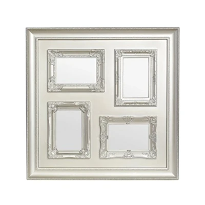 AmazonMade from durable and lightweight plastic with a champagne finish creating a chic style Two landscape and two portrait frames gives you the option of choosing how you want to display your treasured moments Glass panel will protect the photos so they can add a charming appeal all year round Care instructions: Wipe clean with a soft cloth Dimensions (H x W x D): 53 x 53 x 4 cm