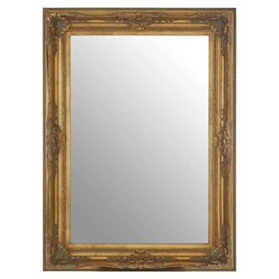 Premier Housewares Wall Mirror/Mirrors For Garden/Bathroom/Living Room With Carving Rectangular Frame/Gold Finish Mounted Mirrors W83 X D8 H113cm.