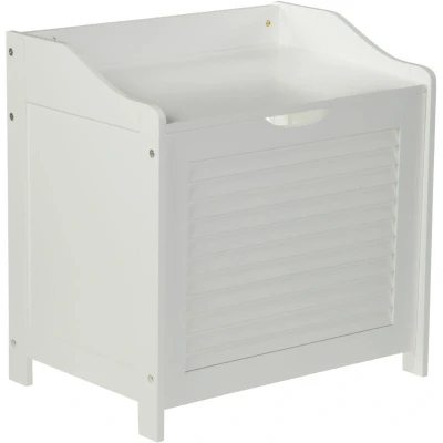 General description The Premier Housewares White Wood Laundry Storage Cabinet features an elegant white finish, making it an ideal addition to your bathroom. The lightweight hinged lid allows for easy access to your laundry when needed, while the slatted front panel provides a stylish shutter effect that complements any decor.