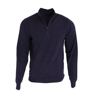 Mens sweater. 1/4 zip through collar fastening. Cotton rich yarn for a soft feel. Fine gauge knit. Set in sleeve with a ribbed knit cuffs and ribbed hem for fitted styling. Fabric: 55% Cotton, 45% Acrylic. Mens Chest Sizing (inches): XS - 33, S - 35, M - 38, L - 40, XL - 42, 2XL - 45, 3XL - 47, 4XL - 50.