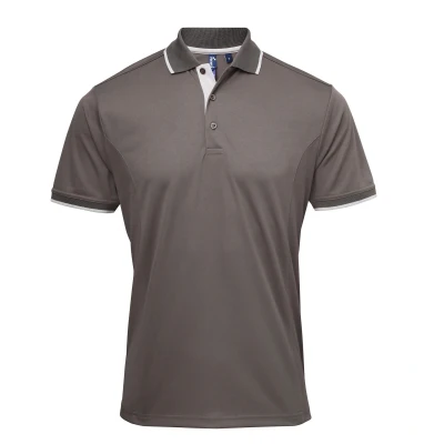 Premier Mens Contrast Coolchecker Polo Shirt (Dark Grey/Silver) Size 4XL