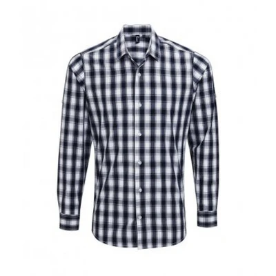 Premier Mens Mulligan Check Long Sleeve Shirt (White/Navy) Cotton Size 2XL