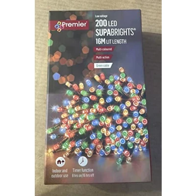 Premier Multi Coloured 200 LED Christmas Lights Supabrights