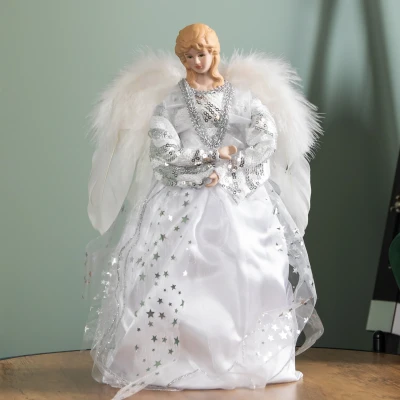 ManoManoGeneral description This 30cm tall Christmas Tree Top Fairy Angel ornament is a stunning addition to your holiday decorations. With incredible detail, it features a long flowing dress, intricate chest detail, and delicate feather fairy wings, making it a perfect centerpiece for your Christmas tree.