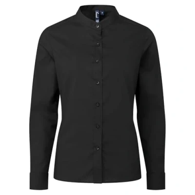 Premier Women's Banded Collar 'grandad' Shirt Black S