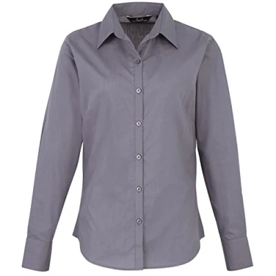Premier Women's Poplin Long Sleeve Blouse Steel 16