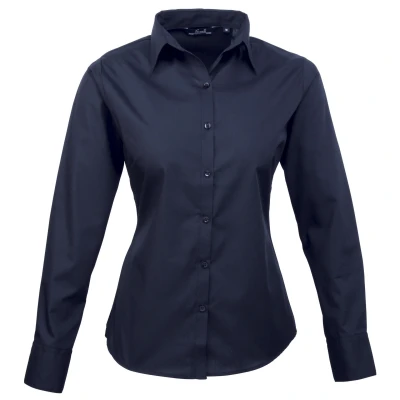 Premier Womens/Ladies Poplin Long Sleeved Blouse (Navy) Size 16 UK
