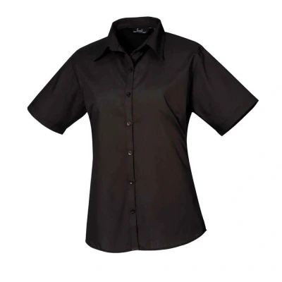 Premier Womens/Ladies Poplin Short Sleeved Blouse (Black) Size 8 UK
