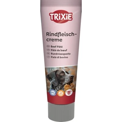 REWARD EFFECT: TRIXIE Beef Cream offers your four-legged friend a delicious dog cream that is ideal as a special treat MEDICATION ADMINISTRATION: The practical food cream makes it easier for you to administer medication, as it can be easily applied around tablets or capsules GLUTEN-FREE: The creamy dog snack paste is gluten-free and therefore also suitable for sensitive dogs NO ADDED SUGAR: The tasty cream contains no added sugar and is available in a 110 g tube, making it a treat that is suitable for everyday use