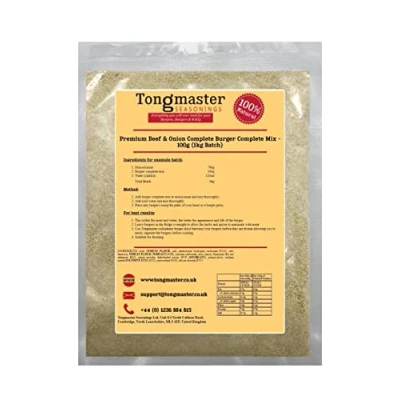 A classic combination of beef and onion, the perfect flavour for any burger. Use 100g mix per 1kg minced meat, includes rusk. This will make 1kg of burgers. Use with beef, chicken, pork, lamb or alternative! Simply add this seasoning to minced meat & water. Shape the burgers by hand or use a press for a professional look! The colder the meat and water, the better the appearance and life of the burger. Leave burgers in the fridge overnight to allow the herbs and spices to marinade with the meat Dont forget to use burger discs between your burgers before they are frozen allowing you to easily separate the burgers.