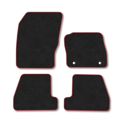 Premium Carpet Tufted Car Mats for Ford Focus (2011 2014) [MK3] Red Trim Velour Tailored Upgraded Comfort Enhanced Durability Water Resistant Anti Slip Hand Finished with Clips
