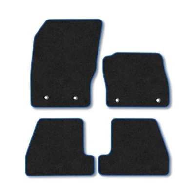 Premium Carpet Tufted Car Mats for Ford Focus (2015 2018) [MK3] Blue Trim Velour Tailored Upgraded Comfort Enhanced Durability Water Resistant Anti Slip Hand Finished with Clips