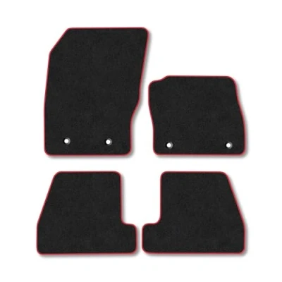 Premium Carpet Tufted Car Mats for Ford Focus (2015 2018) [MK3] Red Trim Velour Tailored Upgraded Comfort Enhanced Durability Water Resistant Anti Slip Hand Finished with Clips