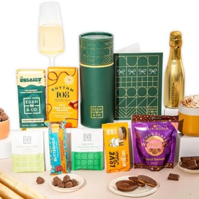 Premium Chocolate Letterbox Gift Tube with Truffles & Hot Chocolate, Luxury Gourmet Gifts for Women, Men, Couples by EDEN CO Plus 1 Prosecco