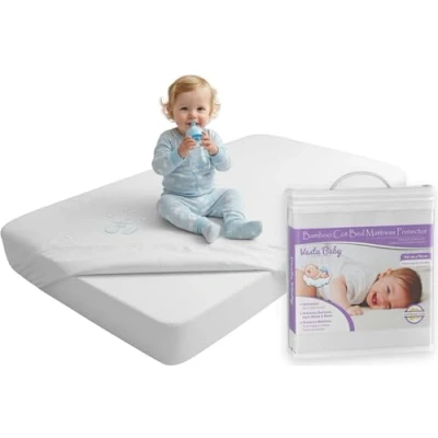 Premium Cot Bed Mattress Protector 70 x 140 cm Noiseless Waterproof Pad Cover Fitted Sheet Natural Bamboo Silent Topper for Baby Toddler Children Cotbed