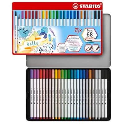 Premium Fibre Tip Pen STABILO 68 brush Tin of 25 19 assorted colours