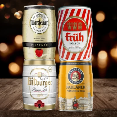 Premium German 5ltr Mini Kegs Variety Collection - (Fruh, Warsteiner, Paulaner & Bitburger)