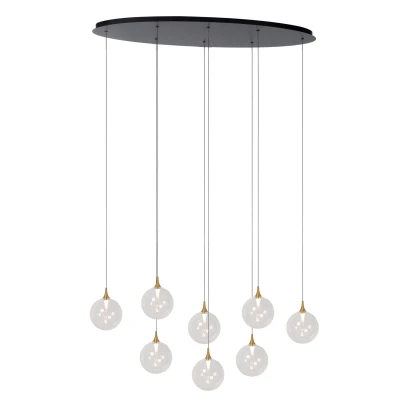 Do you sometimes find it difficult to keep all the balls in the air? Leave that to Gisela, a hanging lamp that consists of different pendants with clear, glass balls, each of which is adjustable in height. The integrated LED bulbs are dimmable and spread warm, white light. This timeless, spherical design works well in both classic interiors and modern homes. Whether you hang them at the same height or playfully descending: you will always score with this elegant hanging lamp. Unique product features: • With integrated dimmable LED light sources • Fitted with warm white light (2700K) • This lamp is adjustable in height • Easy to connect to a dimmer (excl.) • Made of high quality glass Important product features: • Energy consumption: 8x3,9W / 230V / Dimmable (Light bulbs included) • Dimensions: L.140 x W.40 x H.206 cm • 5 Years warranty on the fixture What sets the Lucide PREMIUM range apart? Lucide PREMIUM is a selection of design lamps specially developed for those seeking just
