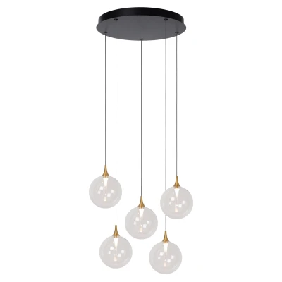 Do you sometimes find it difficult to keep all the balls in the air? Leave that to Gisela, a hanging lamp that consists of different pendants with clear, glass balls, each of which is adjustable in height. The integrated LED bulbs are dimmable and spread warm, white light. This timeless, spherical design works well in both classic interiors and modern homes. Whether you hang them at the same height or playfully descending: you will always score with this elegant hanging lamp. Unique product features: • With integrated dimmable LED light sources • Fitted with warm white light (2700K) • This lamp is adjustable in height • Easy to connect to a dimmer (excl.) • Made of high quality glass Important product features: • Energy consumption: 5x3,8W / 230V / Dimmable (Light bulbs included) • Dimensions: Ø48 cm H.206 cm • 5 Years warranty on the fixture What sets the Lucide PREMIUM range apart? Lucide PREMIUM is a selection of design lamps specially developed for those seeking just that