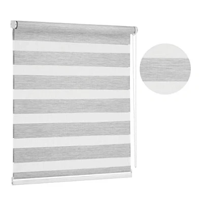Premium Grey Day and Night Zebra Window Roller blind, 17 width sizes, large 200cm drop (60cm Wide) 23.6"
