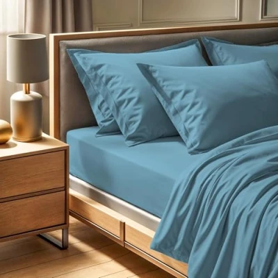 Premium Ranforce King Fitted Sheet (160 x 200 + 30 cm), 100% Cotton, 145 Thread Count, Machine Washable at 30C, Elegant Blue Colour for Luxurious Comfort