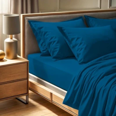 Luxurious Comfort: Crafted from 100% cotton Ranforce, this super king fitted sheet offers a soft and breathable sleeping surface for a restful night's sleep. Perfect Fit: Designed to fit mattresses measuring 180 x 200 + 30 cm, ensuring a snug and secure fit without slipping or bunching. Durable Quality: With a 145 thread count, this fitted sheet combines durability with a smooth texture, making it ideal for everyday use. Easy Care: Machine washable at 30 °C, this fitted sheet is easy to maintain, allowing you to keep your bedding fresh and clean with minimal effort. Stylish Design: Featuring a rich petrol blue color, this fitted sheet adds a touch of elegance and sophistication to your bedroom decor.