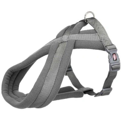 Comfortable harness for dogs, size XS-S (30-40 cm, 15 mm). Features a fleece lining for pleasant wear and an adjustable belly strap. Graphite gray color, ideal for small sizes.