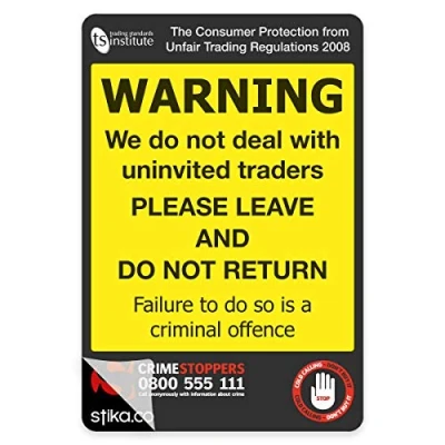 PREMIUM Trading Standards Cold Calling UNINVITED TRADERS Warning Sticker LAMINATED self adhesive Safety Sign