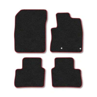Premium Tufted Carpet Car Mats for Nissan Qashqai (2021+) [Mild Hybrid] Red Trim Velour Tailored Floor Mat Upgraded Comfort Enhanced Durability Anti Slip Hand Finished with Clips